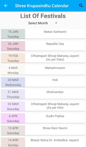 Shree Krupasindhu calendar mobile app is an authentic source of the Calendar, almanac, festivals, holidays and auspicious days. It is also the almanac for solar as well as lunar events. It shows lunar dates and events along with regular dates.