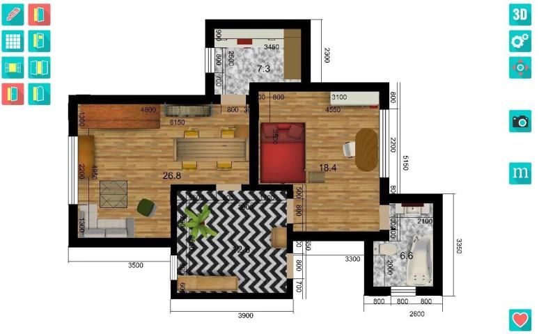 5. في 3D عرض لك مكان الأثاث في التصميم الداخلي الخاص بك