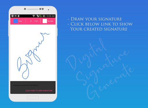 صانع التوقيع الرقمي هو التطبيق هو السماح لرسم التوقيع الرقمي داخل التطبيق والسماح لتخزين بطاقة SD.