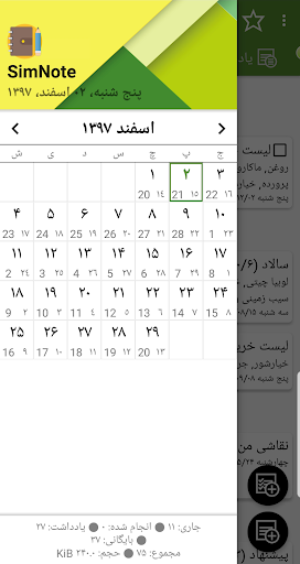 - اختيار نوع التقويم (Gregorian / الفارسية / الإسلامية-العربية)