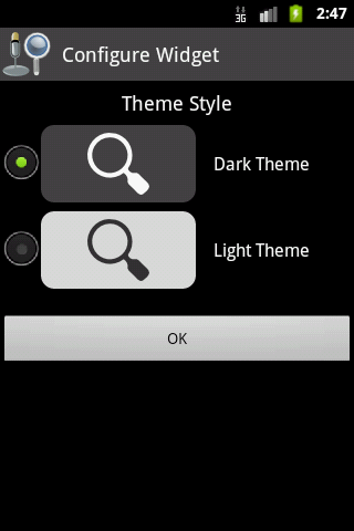 Are you tired of looking at the Google Search widget, but still want easy access to searching? This widget is for you. With widget sizes of 1x1 and 1x2, this minimalist widget adds a simple icon to activate either Global Search or Voice Search.