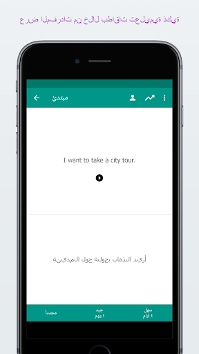 مثلاً, اسمح للتطبيق بالتحدث مع سائق سيارة الأجرة في البلاد المتحدثة باللغة الانكليزية لتريهم الى أين تريد الذهاب.