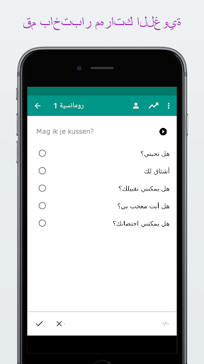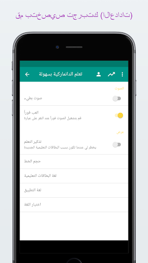 * قم بضبط اعدادات الاختبارات والبطاقات التعليمية من أجل الهولندية -> العربية, العربية -> الهولندية