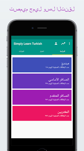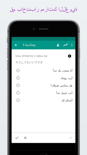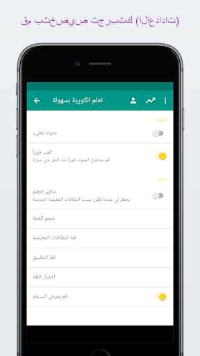 ✓ قم بضبط اعدادات الاختبارات والبطاقات التعليمية من أجل اللغات -> العربية, العربية -> اللغات