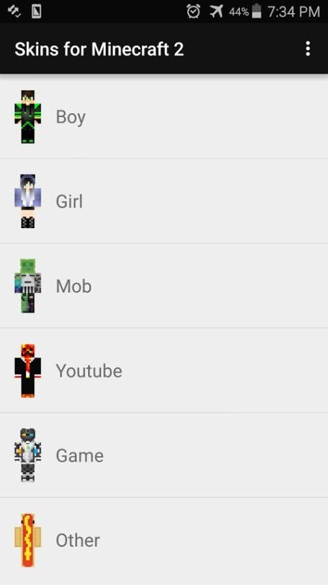 جلود ماين كرافت 2 يسمح لك بسهولة العثور على جلود ماين كرافت المفضلة لديك. اختر فئة: فتى، فتاة، الغوغاء، يوتيوب، لعبة، وغيره. ثم العثور على الجلد المفضلة لديك، وانقر على زر "حفظ إلى ماين كرافت PE".