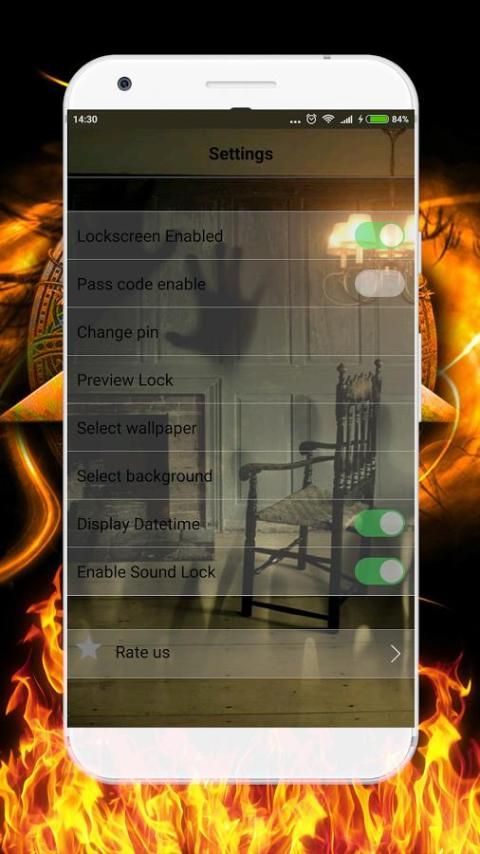الجمجمة قفل الشاشة مع الجمجمة المتحركة والهيكل العظمي في النار! الجمجمة شاشة القفل هو متعة وتطبيق مجانية لأغراض الترفيه. يمكنك استخدام التطبيق لقفل شاشة الهاتف.