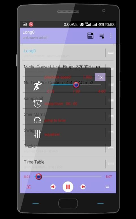 يتيح لك تشغيل جميع الصوت / تنسيقات الملفات الموسيقية والتحكم في سرعة الحركة.