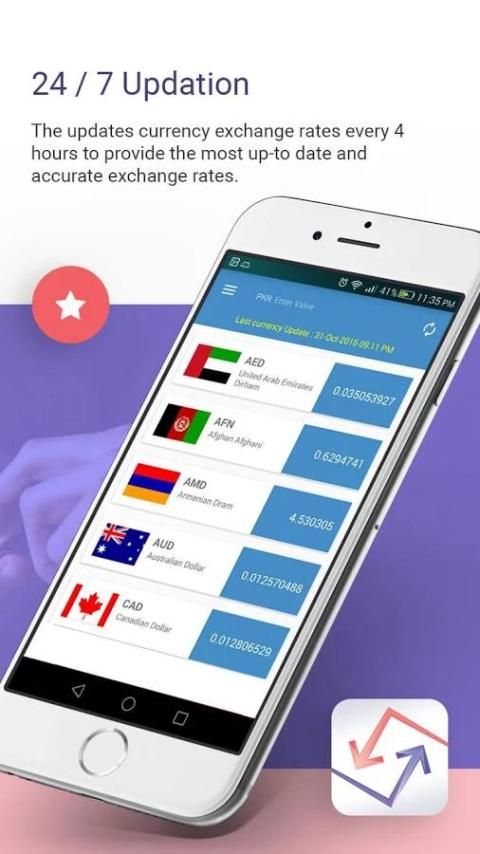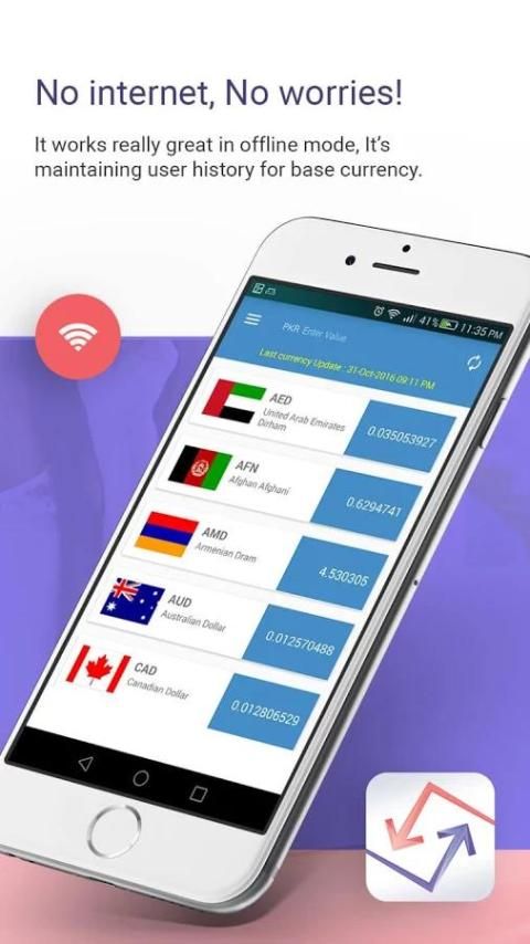 أسعار صرف العملات في الوقت الحقيقي ووضع غير متصل بالشبكة توفير الوقت والتكلفة. القدرة على اختيار العملة الأساسية وmaping يصل إلى 5 تبادل العملات، يتم إرسال تغيرات سعر الصرف إلى الجهاز عن طريق الإخطارات.