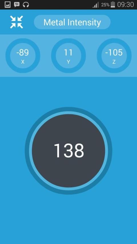 يستخدم الذكية التطبيق للكشف عن المعادن الأجهزة الخاصة بك الاستشعار المغناطيسي لقياس قيم الحقول المغناطيسية ويتحول أي الروبوت إلى جهاز الكشف عن المعادن الحقيقي