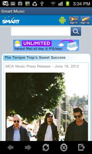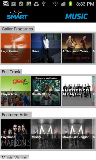 Get Music Services from SmartSmart Music:This app allows Smart subscribers to download Caller Ringtunes and Full Track Music. You can also get the latest news, gigs amp; events, and watch music videos wherever you are.APP FEATURES: Caller Ringtunes Smart Subscribers Only New Full Track Smart Subscribers Only News amp; Articles Gigs amp; Events Music Videos FAQsSmart Music is one in a series of first apps on the Android Market from a Philippine Mobile Company. ABOUT SMART MUSIC SERVICES:Smart39;s online music site lets users get the latest on Music for their mobile device. It features the latest tracks and the hottest ringtones Visit us at http:smart.com.phmusicABOUT SMART:Smart communications Inc. is the Philippines39; leading wireless services provider with 45.6 million subscribers on its GSM network as of endDecember 2010.Smart has built a reputation for innovation, having introduced worldfirst wireless data services, including mobile commerce services such as Smart Money, Smart Load and Smart Padala. Smart also offers 3G and HSPA services. Smart is a whollyowned subsidiary of the Philippines39; leading telecommunications carrier, the Philippine Long Distance Telephone Company. Visit our website at http:smart.com.ph