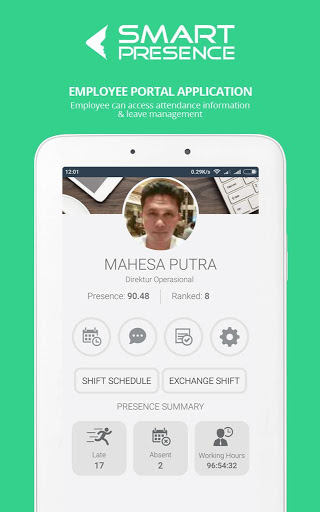 SmartPresence Employee is an attendance portal used by employees to view personal attendance data. With this mobile app version it will provide access to data information more quickly and efficiently. This application allows employees to trace their time attendance to be faster and more effective, anytime and from anywhere.