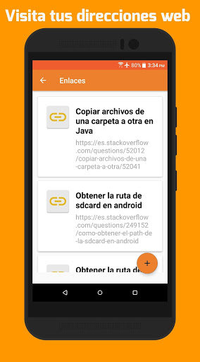 1- Navegador web integrado para buscar direcciones web y guardarlas en tiempo real mientras navega.