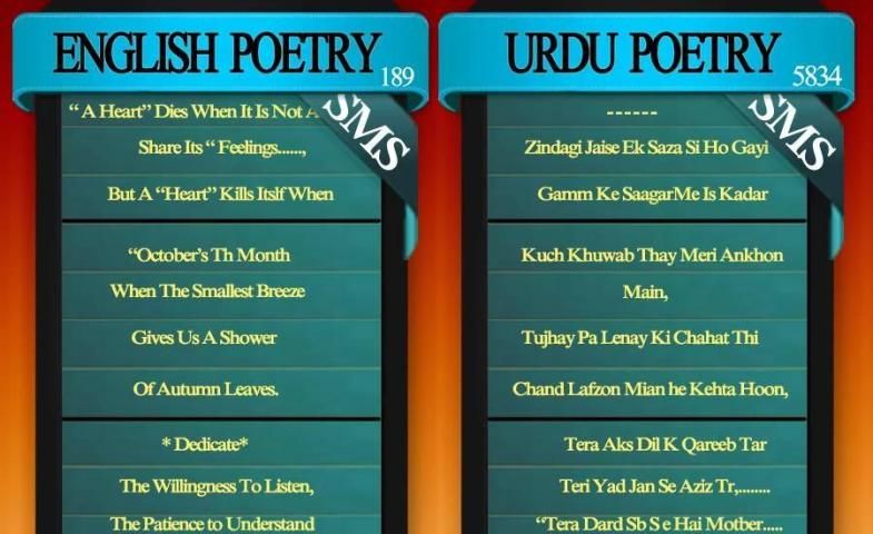 لديها مجموعة واسعة من الرسائل القصيرة تصنيفها بشكل جيد في مضحك، سانتا بانتا، راجنيكانت، كلية، الصداقة والرسائل القصيرة وغيرها الكثير لسهولة التصفح. يمكنك تصفح SMS حسب الفئات، أحدث إضافة أو التصنيف.