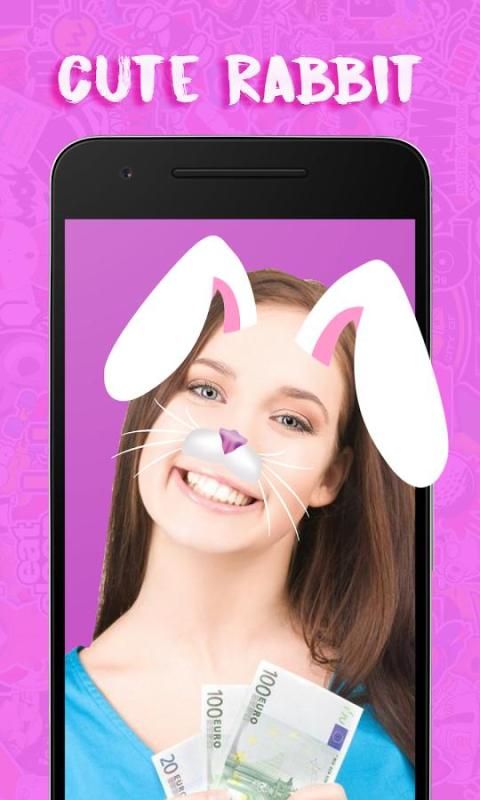 والعديد من الفلاتر وملصقات المتاحة، مثل وجه الكلب، القط وجه، أرنب وجه، قوس قزح، عيون الحيوانية، حفلة تنكرية الكاميرا، رمز تعبيري، والدموع، والمفاجئة النص وهلم جرا.