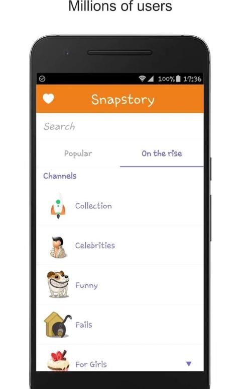 تثبيت التطبيق Snapstory للهواتف والأجهزة اللوحية في الروبوت. Snapstory - أسهل وسيلة أكثر متعة لقضاء الوقت في مشاهدة مقاطع فيديو كوميدية الحرة. اختر فئة لعرض مقطع والتمتع 15 ثانية اليومية مقاطع الفيديو. أفلام شعبية والجديدة في فئة مختلفة. مشاهدة قنوات بث والأحداث الكبرى التي تريد، على أي جهاز. أفضل فيديو مضحك من جميع أنحاء العالم فقط لأجلك.
