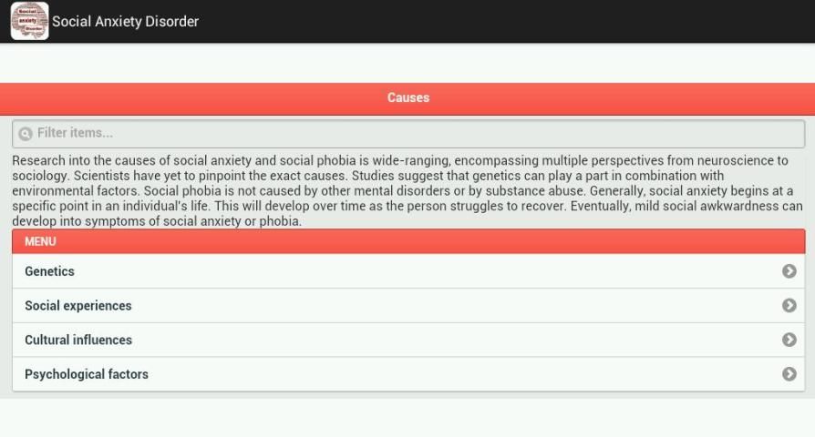 هذا التطبيق لديها معلومات كاملة اضطراب القلق الاجتماعي. ومن المعروف الخوف المعقول من الحالات الاجتماعية، اضطراب القلق الاجتماعي. هذا التطبيق لديها الكثير من المعلومات من العلامات والأعراض، الأسباب والعلاج وغيرها وهذا التطبيق سهل الاستخدام تساعدك على تشخيص اضطراب القلق الاجتماعي.