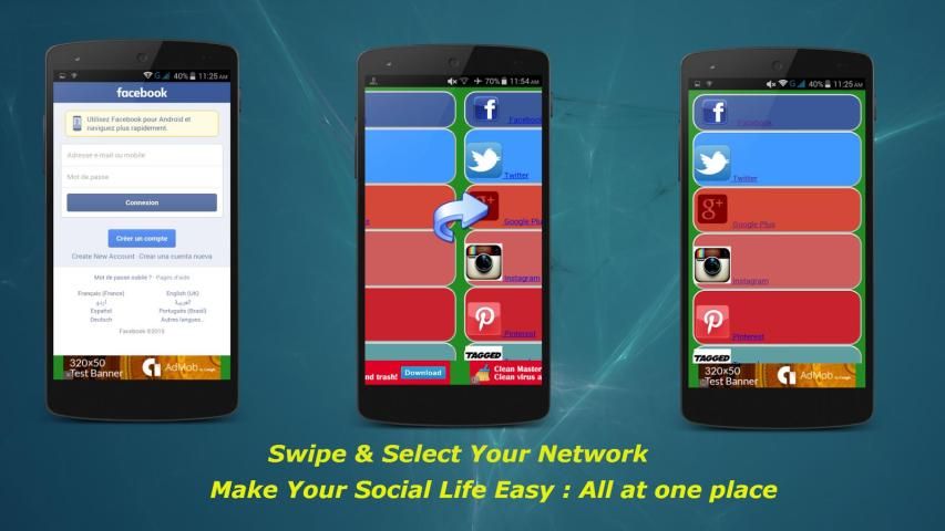هذا التطبيق سوف سائل الاعلام الاجتماعية تسمح لك لتصفح جميع الشبكات الاجتماعية شعبية في الوقت نفسه، وأيضا يمكن للمستخدمين التمرير بسهولة بين جميع الشبكات الاجتماعية. هذا هو الكل في واحد: تطبيق فريد للتسويق الاجتماعي ومستخدمي وسائل الإعلام الاجتماعية بسهولة لإدارة جميع الشبكات الاجتماعية شعبية.
