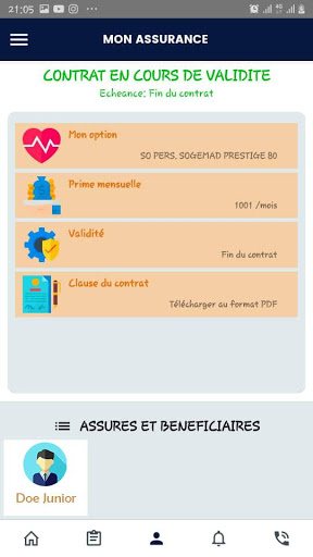 تبقي إلقاء نظرة على جميع المعلومات المتعلقة بوليصة التأمين الخاصة بك (وثيقة عقد التأمين الرقمي، ضماناتك المغطاة، مساهماتك وما إلى ذلك).