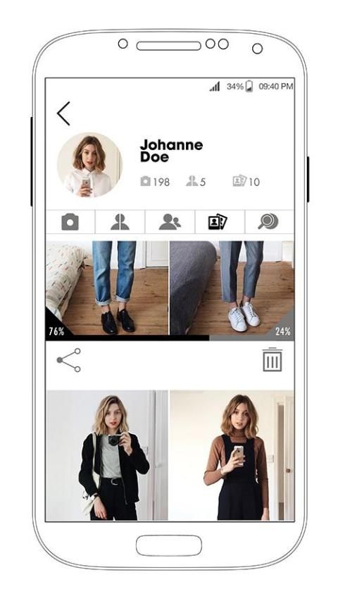 بلدي SOZIE هو في غرفة القياس، مع صور شخصية