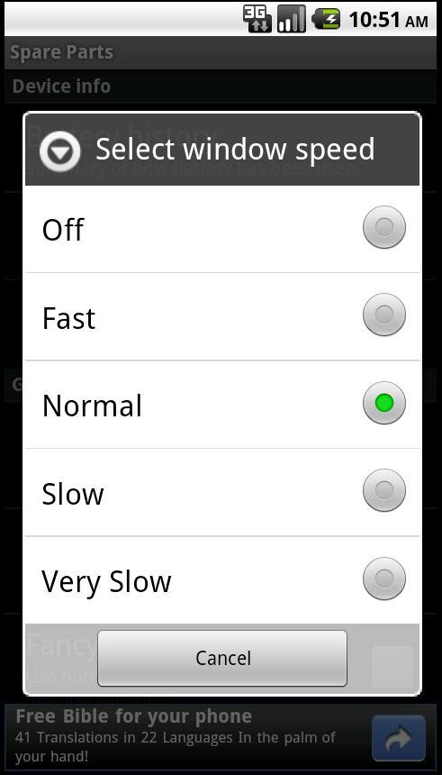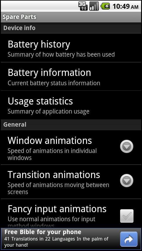 **Ad b/c I added more hidden settings **modify at your own discretion, if uninstalling, change setting back first spare Parts allows you to enable some settings that are not found in the default setting menu I ripped this out from the android source repository. I am not responsible for what it does or does not do