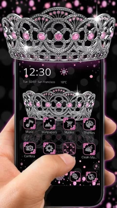 Customized Theme- مضيء الوردي تاج الموضوع مع استحى ثيمات الجلالة هو موضوع تخصيص ويمكنك تطبيق وإزالة موضوع عصري وجميل وتألق كلما أردت.