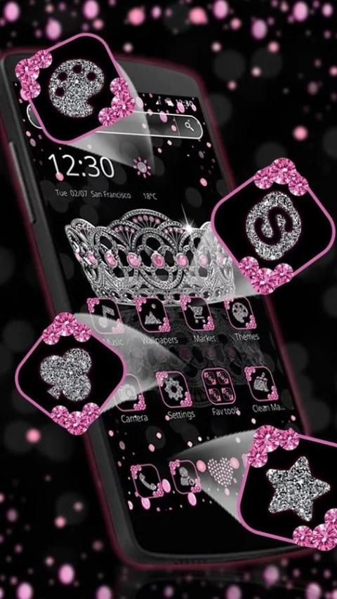 تألق الوردي ولي الموضوع هو لامع وتألق الموضوع مع كل وردي، أحمر الخدود، لمعان، وميض، البريق الرموز التعبيرية مع عصري وأنيق لوحة المفاتيح الظلام. ساطع الملكات تاج موضوع تصميم للبنات والبنين وتريد البنت ونظرة حلوة لالهاتف المحمول عادي من اليوم. لديها مجموعة تاج الجلالة كخلفية مليئة ظلال مختلفة من حظائر مظلمة.