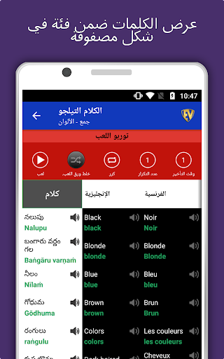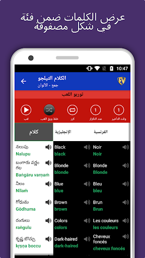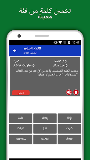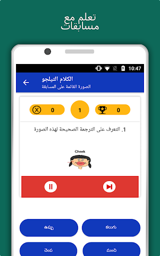 تعلم والتحدث التيلجو من الإنجليزية والروسية والتاميلية والعربية والألمانية والماندرين والبنغالية والهندية والفرنسية والسنهالية، الأفريكانية عبر صوتيات، الصوتيات والصور والألعاب.