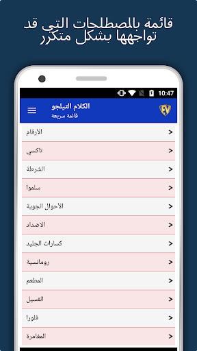 حاليا التيلجو التعلم التطبيق لديه 2،135 الكلمات مع 55 فئات. أنه يحتوي على النطق والصور وصوتيات الكلمات لسهولة التعلم. التبديل لغة قاعدة، حفظ الدروس في EduBank℠، اللعب الصوتي و Potpourriالاحتفاظ الألعاب هي السمات الرئيسية للتحدث التيلجو التطبيق.