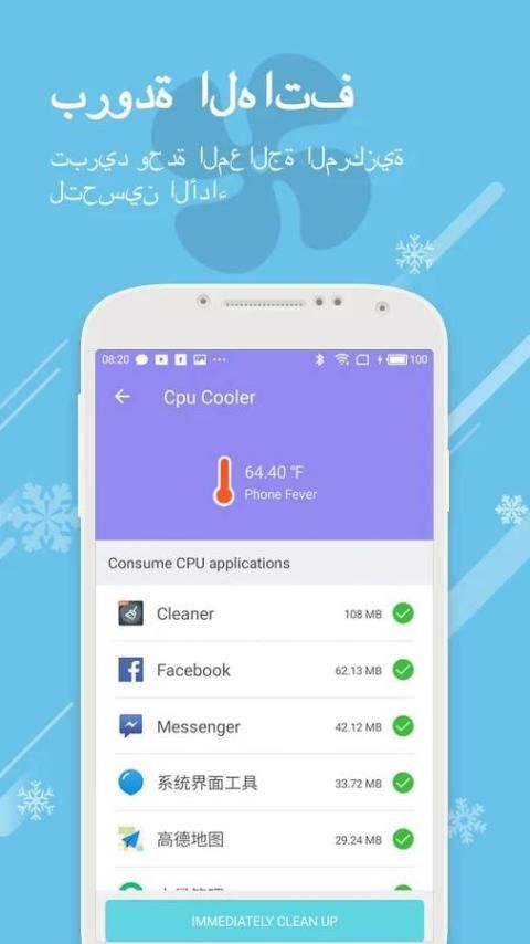 رصد في الوقت الحقيقي من الهاتف المحمول درجة الحرارة وحدة المعالجة المركزية، ودرجة حرارة البطارية، والانتهاء في الوقت المناسب من تطبيقات استهلاك الطاقة، لتجنب ارتفاع درجة حرارة الهاتف.