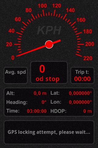 SpeedometerThis is simple speedometer gauge application with geocoders and map support. This app uses OpenGL and have some nice features. The real speedometer gauge is very smooth, it39;s arrow does not have jerks and freeze when moving. So we wanted to imitate the same behavior in this application and we did itThe main features: smooth indicator movement like real gauge; high contrast color scheme aerospace style; 2 texture variants day, night; metricimperial system; reverse geocoder; map support; all parameters of you need to comfortable using in sport, measurement, fun; high smoothness graphics OpenGL.System requrements: Android OS 2.1 or higher; Hardware OpenGL Es 1 0 or higher; 400x240 screen resolution or higher; Touchscreen; GPS.Read manual after installation for more information. If you have troubles or bugs use direct feedback in app.