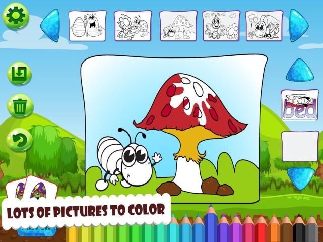تتم مكافأة الأطفال للتعلم مع وصفحات التلوين سهلة الاستخدام البسيطة، التي يمكن من خلالها حفظ لاستخدامها لاحقا.