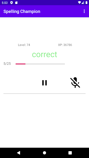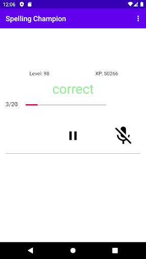 يجب السماح بطل الإملائي أذونات تسجيل الصوت لأداء التعرف على الصوت للكلمات المنطوقة.