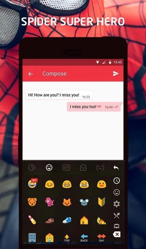 - تثبيت لوحة المفاتيح موضوع جديد TouchPal الحرة العنكبوت بطل السوبر رموز تعبيرية ---> اضغط على الرمز الخاص به ---> شأنه أن يدعم من قبل لوحة المفاتيح TouchPal رموز تعبيرية تلقائيا!
