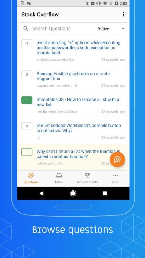 تجاوز المكدس هو can't رمز دون-كان الموقع الذي يطلب المبرمجين المحترفين ومتحمس أصعب الأسئلة والحصول على إجابات من أقرانهم. تعلم والمشاركة ومستوى أعلى - على الذهاب - مع التطبيق مسؤول تجاوز المكدس.