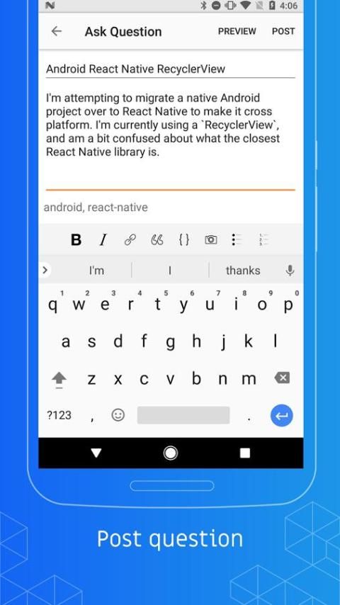- الحصول على إشعار الدفع عندما يجيب شخص ما أو تعليقات على سؤالك. أي شيء من شأنه أن يؤدي إلى رسالة البريد الوارد تجاوز المكدس سوف يؤدي إعلام التطبيق. كما هو الحال دائما، يمكنك بسهولة تحويل الإخطارات وإيقاف عبر الإعدادات.