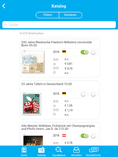 مسح الطوابع الخاصة بك والعثور على المزيد عنها! Stöbere في الكتالوجات عبر الإنترنت، حدد قيمة العلامات التجارية الخاصة بك وتوفر لهم في سوقنا عبر الإنترنت. نريد أن نكون أكبر سوق عبر الإنترنت للخطوط.