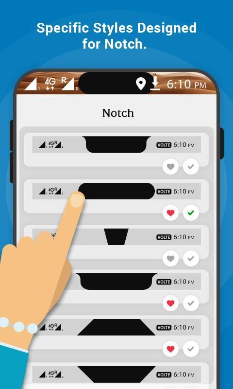 With this app you can actually change the whole display look of your screen. Customize your status bar or notification bar with amazing photo backgrounds, patterns frames, colors or gradient colors, etc,. Also customize the shape your notch to make it a completely different look of your phone.