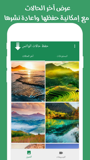 3- تنزيل جميع الفيديوهات والصور من حالات الواتساب بظغطه واحده