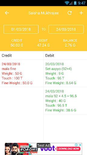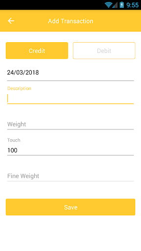 أفضل تطبيق لجميع سميث الذهب لتحقيق احتياجاتهم اليومية مثل الاعتمادات واليديات من الذهب أو الفضة. سيعمل هذا التطبيق مثل كتابك المحاسبي حتى تتمكن من رؤية الاعتمادات الكلية وإجمالي الديون من بائع معين وكذلك من جميع البائعين تاريخ وشهر السنة. بشكل عام، يقوم جميع الصبيثات بالذهب بمحاسبة بعد وقت معين مثل شهر إلى شهر أو سنة إلى أخرى وما إلى ذلك. في هذه الحالة، لا يتعين عليك الاحتفاظ بجميع الأوراق التي تلقيتها من البائع الخاص بك. ما عليك سوى إجراء إدخال في هذا التطبيق وهذا التطبيق سيتذكر كل شيء من أجلك وسيتم الوصول إليه جميع المعلومات على أطراف أصابعك داخل جزء بسيط من الثواني.
