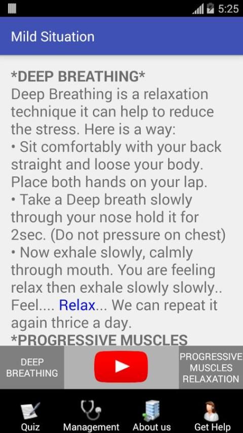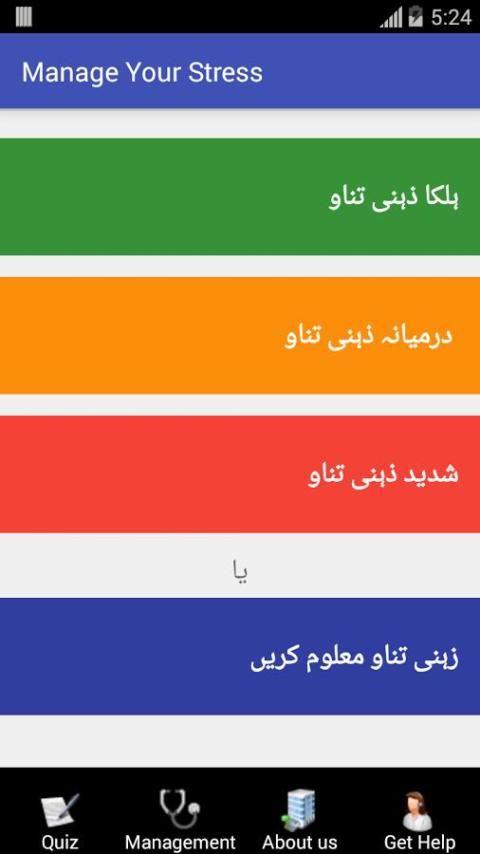 يمكنك إما تحقق تقنيات للحد من التوتر الخاص بك أو الذهاب من خلال استبيان لحساب مستوى الإجهاد ونرى بعد ذلك وفقا لذلك الحل في الشاشة إدارة.