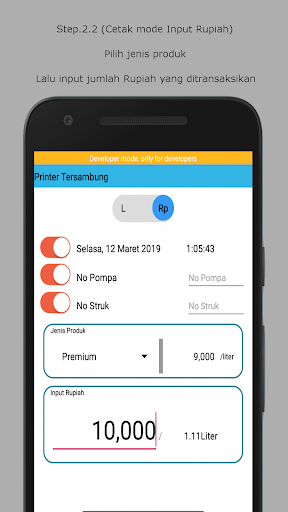 Aplikasi untuk cetak struk Pertamini menggunakan printer bluetooth