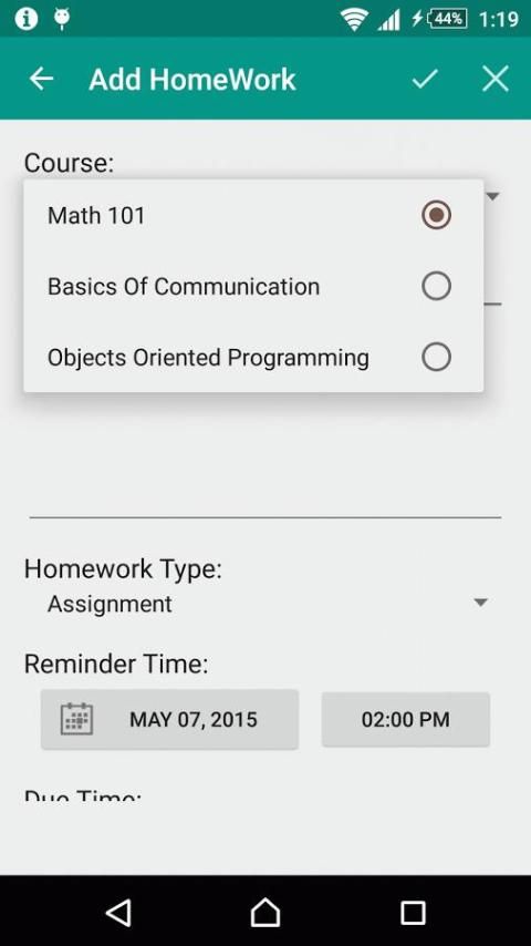 • يمكن للمستخدم تفعيل الطبقة تذكير، إذا تنشيط التطبيق سوف يخطر المستخدم بأن فئة معينة سيكون تبدأ في وقت معين وفي مكان معين.