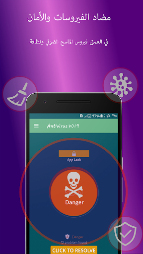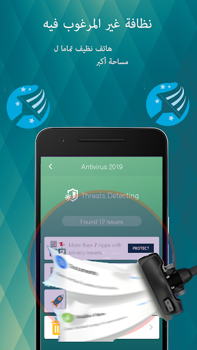 Antivirus - سيقوم منظف الفيروسات الخاص بنظام Android Security بالبحث عن الفيروسات والبرامج الضارة وبرامج الإعلانات في الوقت الفعلي عند تثبيت تطبيقات جديدة. بإمكان منظف الفيروسات الذكي العثور على التهديدات وإزالتها قبل أن يلحق أي ضرر بجهاز Android. ضمان أمن الهاتف 24/7!