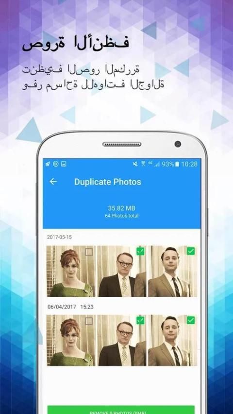 الصور المكررة على الجهاز أيضا من المرجح جدا أن تأخذ مساحة التخزين على الروبوت الخاص بك. مع سوبر نظيفة مزيل الصور المكررة، يصبح من السهل حذف الصور المكررة. مدير تخزين الصور (صور مكررة) يتعرف بلدان جزر المحيط الهادئ مماثلة ويبقي أفضل واحد بالنسبة لك.
