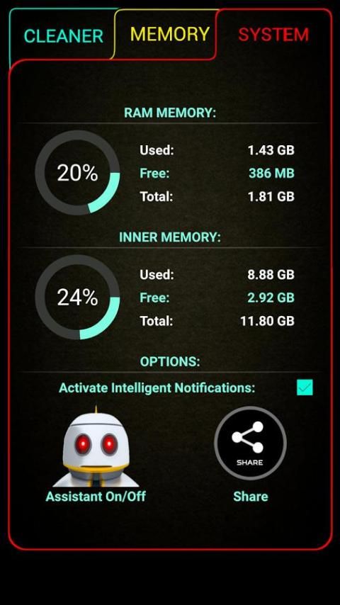 هذه الأداة سوف يفتح الكثير من ذاكرة التخزين في هاتفك وبالتالي عليك أن تكون قادرا على الحصول على تخزين مدمج أكثر الداخلي. أي شخص لديه مشاكل إدارة الذاكرة يجب أن تستخدم هذا التطبيق. بهذه الطريقة سوف تكون قادرة على وقف تحذيرات الذاكرة منخفضة، وإصلاح ذاكرة منخفضة وإصلاح الخاص بك عربات التي تجرها الدواب الميكانيكية الهاتف رجل. إذا كنت تقوم بتشغيل من تخزين التطبيق، عليك أن تكون قادرا على الحصول على مساحة إضافية للتخزين التي تقدمها مسح ذاكرة التخزين المؤقت ومعرفة الملفات التي تم إنشاؤها من قبل التطبيقات.