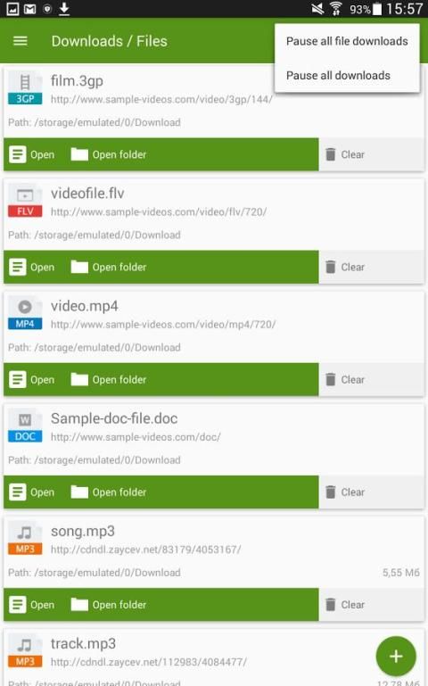 - سيطرة كاملة. تحميل الملفات في الخلفية. وقفة واستئناف التحميل عند الحاجة. الحصول على معلومات مفصلة حول كل ملف وفتحه في التطبيق المفضل لديك.