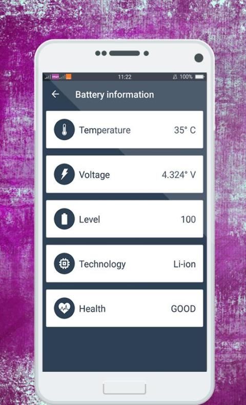 • البطارية التوقف يعرض تفاصيل: درجة حرارة البطارية، البطارية الجهد والصحة البطارية