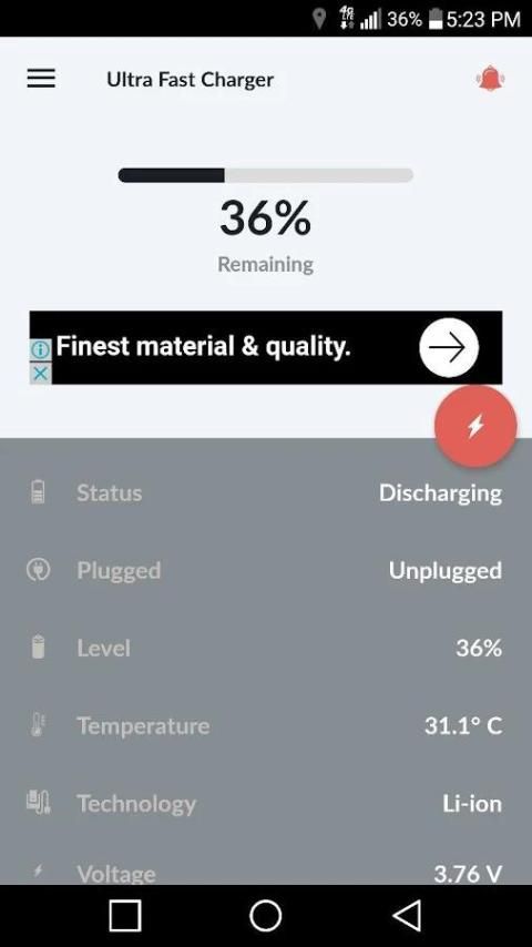 سوبر شاحن سريع عرض المعلومات ذات الصلة عن البطارية في الشاشة الرئيسية حيث لديك يمكن أن نرى درجة حرارة البطارية، بطارية الجهد، وبطارية مصنوعة التكنولوجيا والصحة البطارية الحالية، وبطارية شحن المكونات مثل USB أو غيرها.