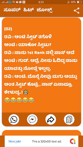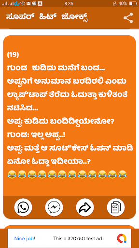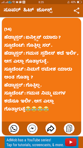 هذا التطبيق مبني في Kannada يحتوي هذا التطبيق على أكثر من 800 Kannada النكات و Funy والتمتع بها بالكامل.
