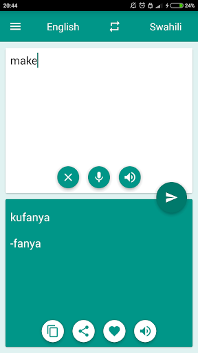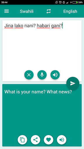 يمكن لهذا المترجم المجاني أن يترجم بسرعة من الكلمات السواحيلية إلى الإنجليزية والإنجليزية (المترجم kiswahili-kiingereza) بالإضافة إلى جمل كاملة.ترجمة فورية وصلاحية كاملة للكلمات.لاستخدام